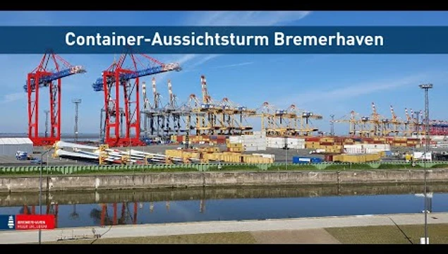 Die Plattform, bestehend aus 8 x 40 Fuß und 4 x 20 Fuß Containern, verspricht in ca. 15 m Höhe einen Rundumblick auf den Container-Terminal, Auto-Terminal, Werft, Schleusen und das Kreuzfahrt-Terminal.